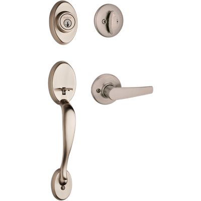 Satin Nickel Shelburne Handleset With Tustin Lever Deadbolt Keyed One Side Featuring Smartkey Kwikset